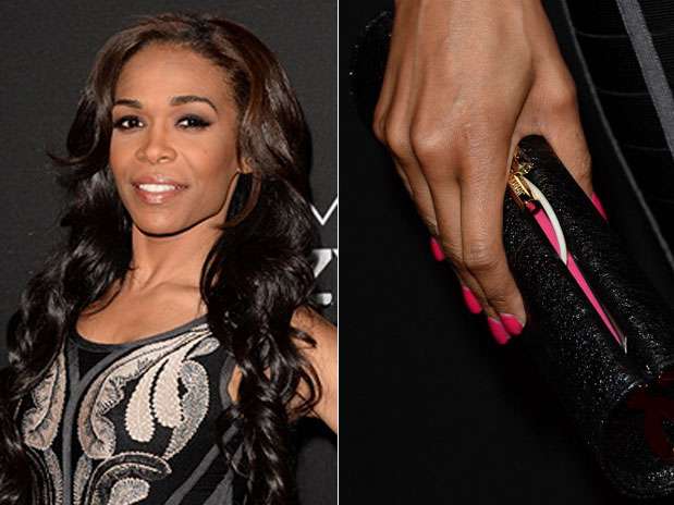 A cantora americana Fergie optou por unhas em formato de garra e esmalte metalizado |