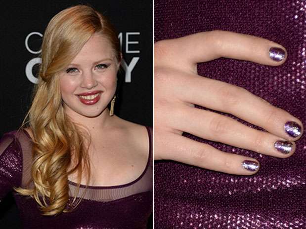 Esmalte com glitter incrementou o visual da atriz americana Sofia Vassilieva |